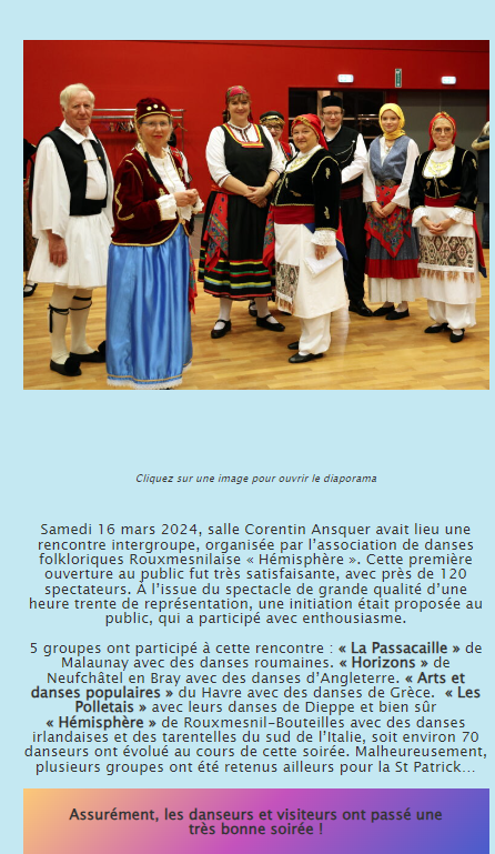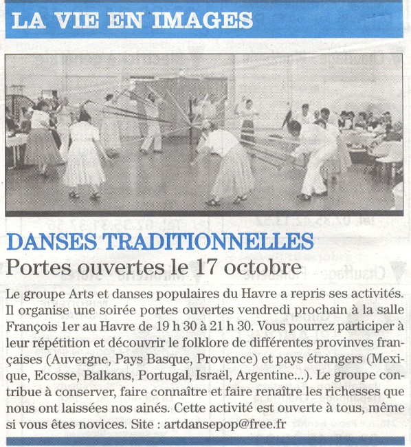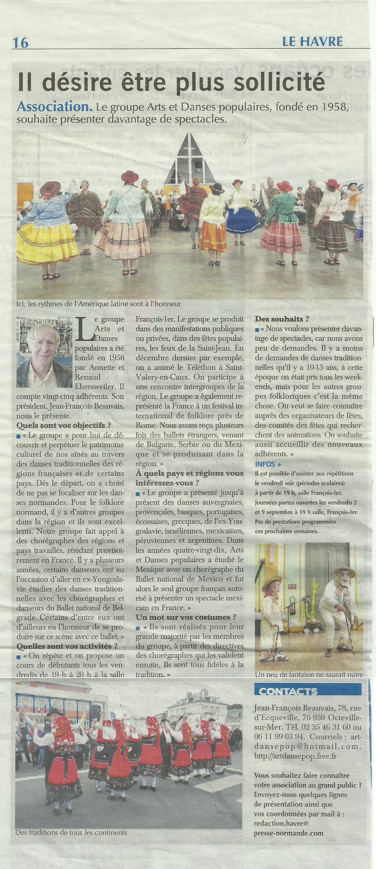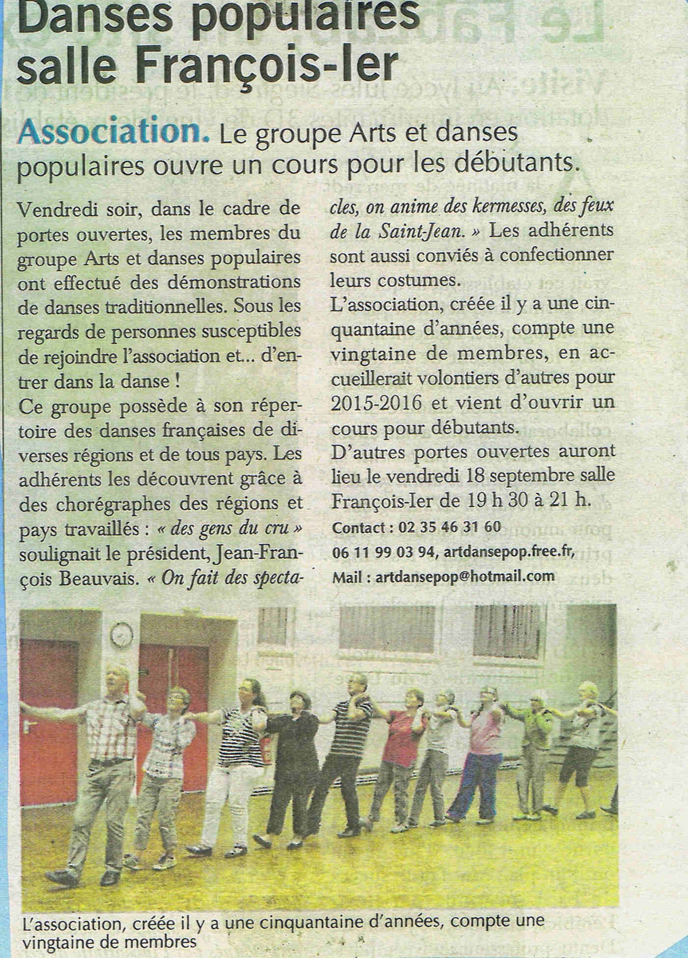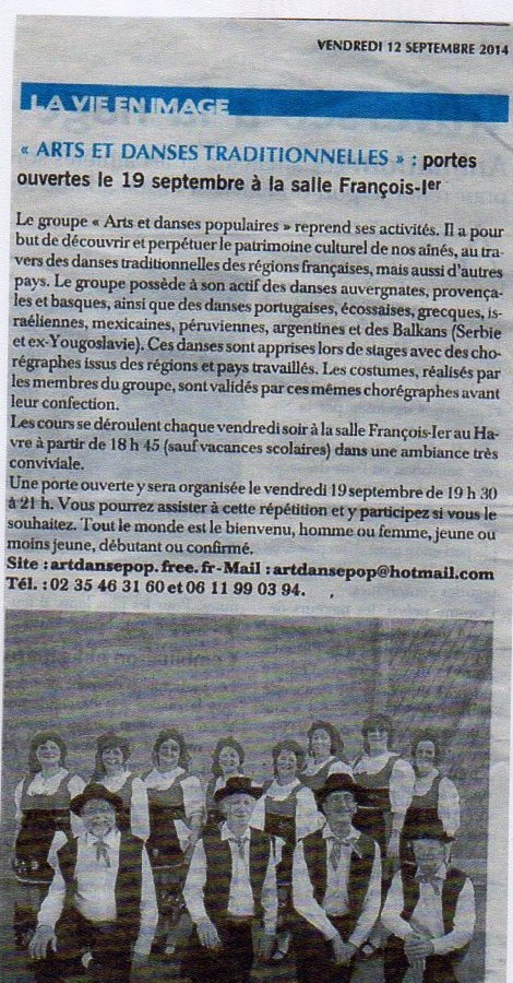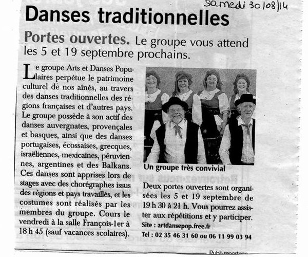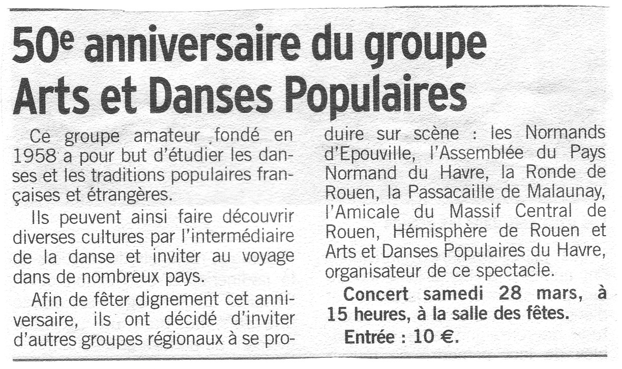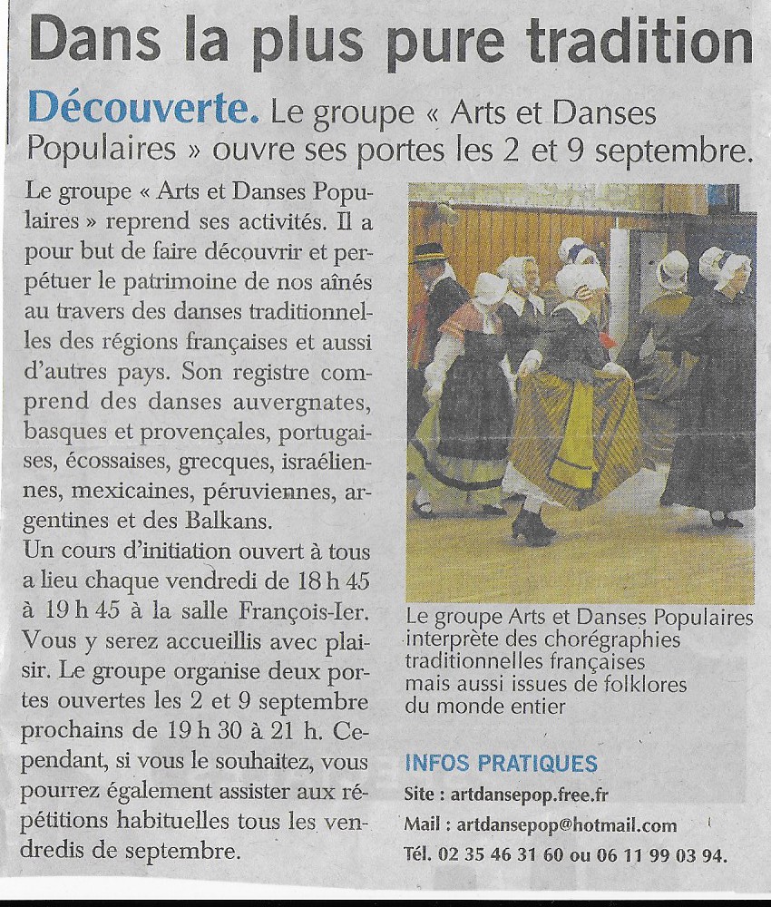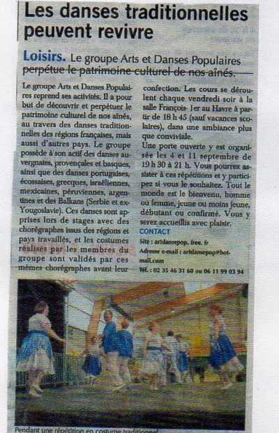 Vous trouverez ici différents articles de presse ou internet retraçant une bonne partie du parcours d'Arts et Danses Populaires depuis 1964 (cliquez sur les articles pour les lire).